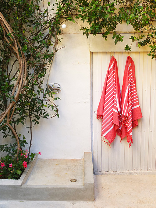 Dans la cour privative, vous pouvez dîner, bronzer dans des transats ou profiter de la douche extérieure en revenant de la plage.