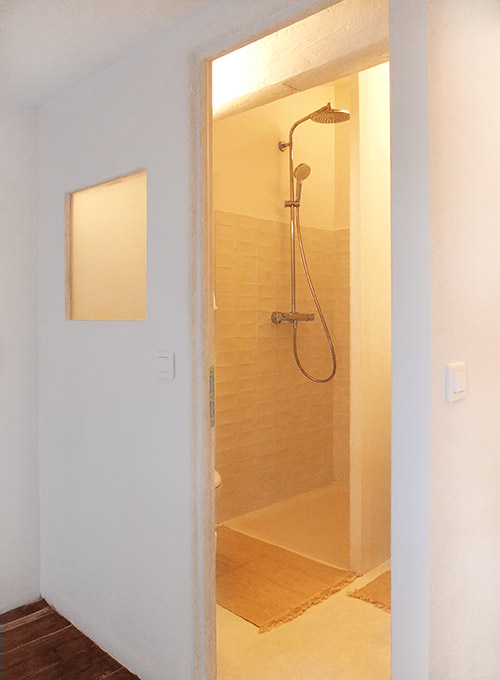 Un escalier vous conduit à la chambre et à la salle d’eau. Une literie de qualité et le choix de belles matières (lin, coton bio)